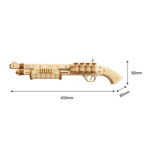 Inspired by the fastest Arsenal M870 shotgun, once the most manufactured shotgun in the USA, the Terminator M870 is a Robotime rubber band shotgun. This gun model is a safe and easy-level 3D wooden puzzle for youngsters aged 14 and up. Assemble all of the pieces and have lots of fun. Shoot downt the target soldiers (included) one by one. This item contains small pieces and is not recommended for children under the age of 3 years. Medium difficulty with recommended age 14+ years.
