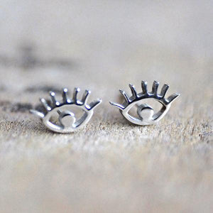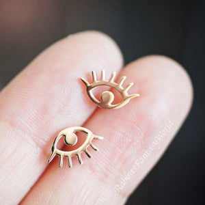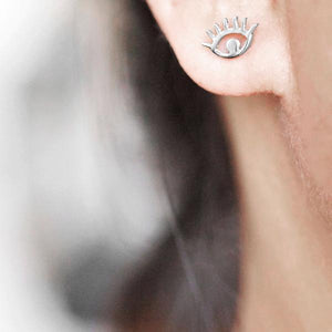 Mystical eye stud earrings handmade in the Netherlands from Stirling Silver, perfect for sensitive ears. Solid Stirling Silver, coated in rose gold/gold, each earring is 10mm in length in is finished with a high buff for a smooth, high shine finish.