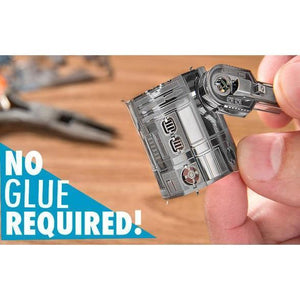 The parts in the kit are laser cut from very thin sheet metal, and once folded into place simply click together - no glue or soldering required. It is recommended this item is purchased with the Metal Earth Toolkit, but not 100% necessary if you already have pliers at home.