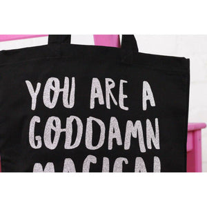 Everyone knows you can never have too many tote bags. These totes are made from thick black cotton with a gusset bottom for extra storage and long straps to allow you to easily sling over the shoulder. Perfect for beach, party, shopping or sleepover.