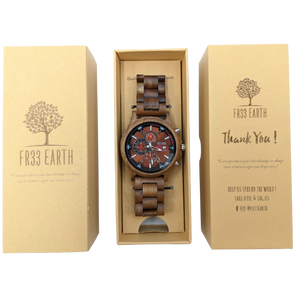 Each FR33 Earth wooden watch is handmade in a carbon neutral factory and a percentage from the sale of each watch provides funds to help farmers in developing countries build a life out from poverty.